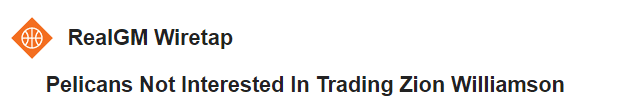 名记报道鹈鹕没有兴趣交易锡安,去年锡安受伤前,他们是西部第一的球队。如果他很健康,但他很少健康,不过当他健康的时候,锡安很容易成为NBA最好的球员之一;所以鹈鹕尝试用锡安换榜眼签的交易不会发生,鹈鹕更没有和开拓者谈过关于3号签的交易。