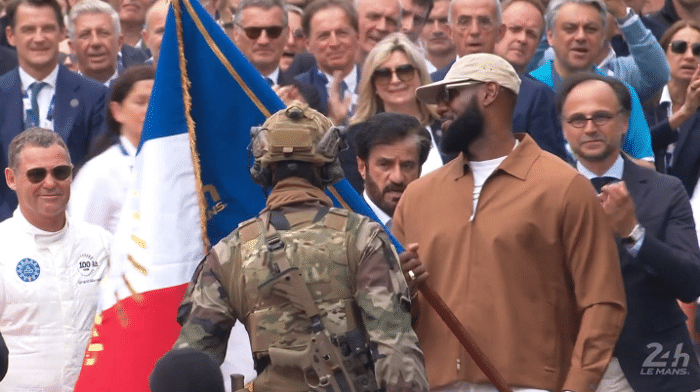 24直播网06月11日勒芒24小时耐力赛开幕,挥舞大旗宣布开赛的是一位特殊的人物,来自NBA洛杉矶湖人的顶级巨星勒布朗-詹姆斯,他受邀在勒芒百年纪念赛中担任发车旗手,现场人声鼎沸,好不热闹。