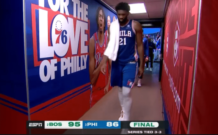 第四节,76人和凯尔特人打得十分胶着,可关键时刻,哈登突破直接失误送球权,而14中1的塔图姆突然暴走,关键时刻连续命中4记三分,打得费城早早放弃比赛,最终76人输掉关键一战,恩比德十分沮丧,第一时间离场返回更衣室。