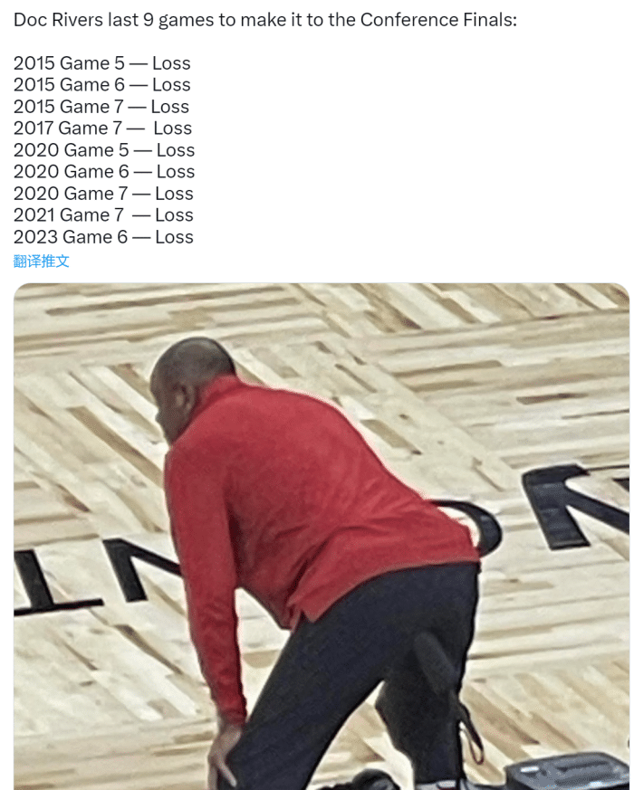 里弗斯执教生涯至今,他所执教的球队曾3次3-1领先和3次3-2领先被逆转淘汰,难道里弗斯今年要被第7次逆转吗?