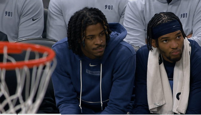 今天雄鹿和灰熊两队的当家球星字母哥和莫兰特都坐在场边观战,字母哥狂吃零食十分抢镜。