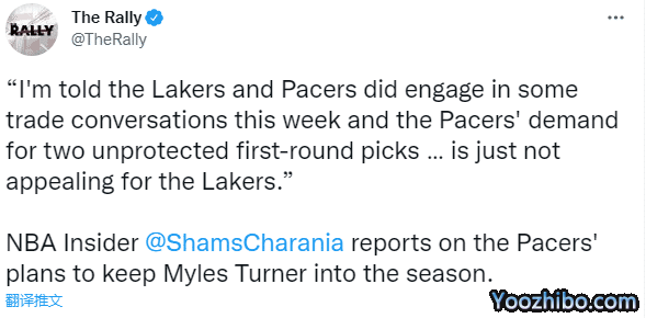 24直播网09月22日,湖人与步行者交易谈判失败,迈尔斯-特纳新赛季留守步行者;名记shams曝光谈判失败内幕,湖人拒绝送走两个首轮签,预计湖人保守进入新赛季;另外湖人有望很快引援神射博扬。