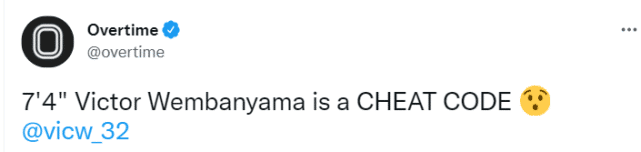 美媒Overtime晒出了文班亚马在这场比赛里的一些高光表现,感慨他就是作弊码。文班亚马裸足身高约2米24,臂展约2米44,身体天赋相当恐怖。