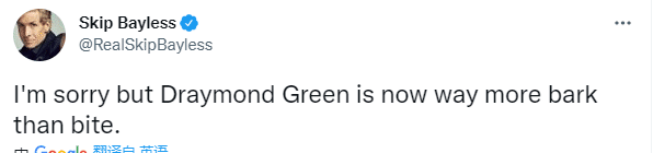 格林糟糕表现遭质疑,斯基普-贝勒斯发推:抱歉,但德雷蒙德格林现在的吠声多于咬人。