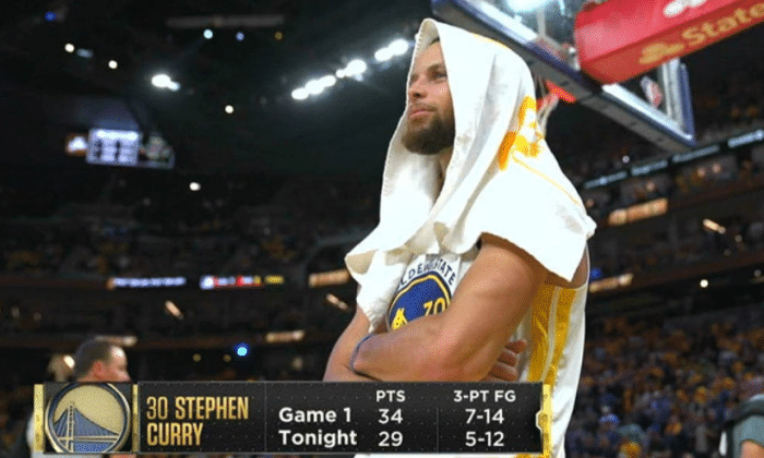 但是第三节风云突变,勇士在库里率领下打出爆炸性的进攻表现,库里连续命中三记三分球,最后一球更是接近LOGO位置。这球也瞬间点燃了大通中心的气势。最后阶段,普尔连续命中三分,尤其是压哨的中线三分技惊四座。勇士单节轰出35-14,净胜21分也创下勇士总决赛队史纪录。末节初段,勇士又连得6分,分差来到29分。