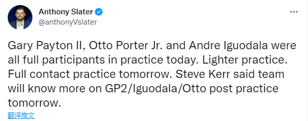 科尔还表示小佩顿用左手投篮,并且在过去的一周不断扩大他的射程,据名记shams报道,佩顿总决赛G1的出战状态为赛前决定。
