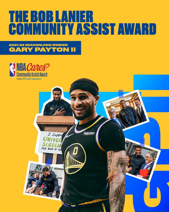 今日勇士官方恭喜加里-佩顿二世获得2022NBA鲍勃-兰尼尔社区关怀奖,以表彰他在整个赛季持续向社区伸出援助之手,支持湾区的年轻人。