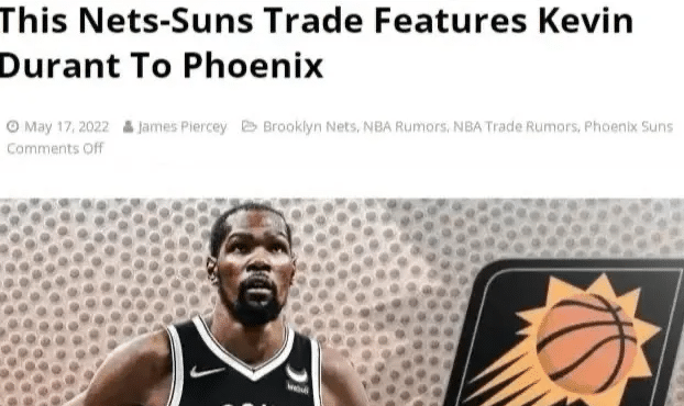 据太阳跟队记者Even Sidery报道,太阳队已经将引援目标锁定在杜兰特身上,如果他愿意离开布鲁克林,太阳队愿意打包交易艾顿+布里奇斯+佩恩+2个首轮签。