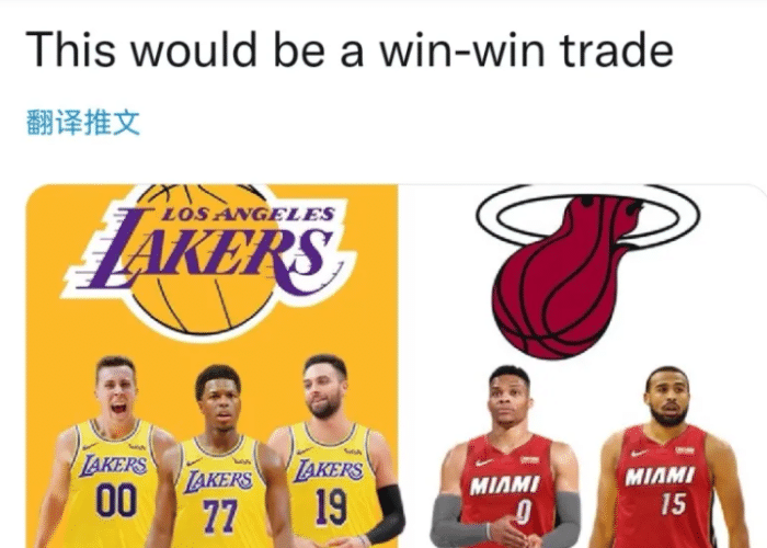 美媒提议湖人和热火进行2换3交易,湖人队送出威少和小塔克,从热火队得到洛瑞、邓肯罗宾逊和斯特鲁斯。这笔交易,双方各取所需,湖人队可以甩掉威少的大合同,而且,还能得到两位出色的射手,他们在詹姆斯身边打球,肯定有更大的发展空间。而且,洛瑞显然比威少更适合湖人,即便他现在已经不是全明星了,但防守能力还是很强,而且,洛瑞的投篮和组织能力,都比现在的威少更好一些。