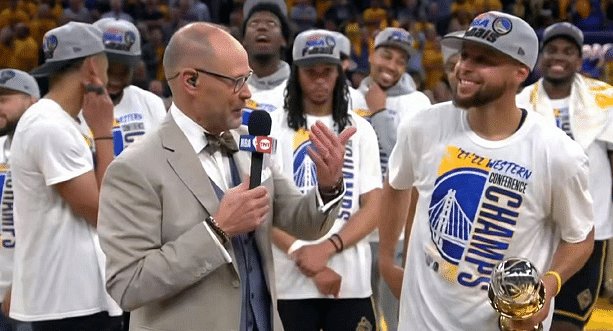 24直播网05月28日讯 ,昨天NBA西部决赛落下帷幕,勇士主场以10分优势击败独行侠,系列赛4-1淘汰对手,成功晋级总决赛,时隔3年夺得西部冠军。这场比赛勇士打得气势如虹,克莱表现强势,库里和追梦格林发挥全面,还有普尔、维金斯等人,球队取得胜利之后成功夺冠。库里斩获第一届西决MVP的荣誉,现场举起奖杯,宣布的瞬间克莱兴奋到跳起来。