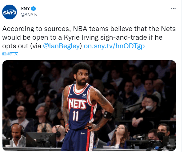 24直播网05月27日讯 ,曝篮网愿意交易欧文,据纽约记者Ian Begley报道,若欧文今年夏天不执行下赛季的球员选项,篮网将会接受欧文的先签后换交易。