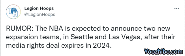 24直播网05月25日讯,据美媒Legion Hoops爆料,NBA计划在2024年媒体版权协议到期后宣布扩军。扩军的地点将在西雅图和拉斯维加斯,这也意味着届时NBA将成30支球队变成32支球队。由于扩军两队都在西部,预计有球队将从西部被划入东部,此前有爆料称这支球队或许是灰熊。