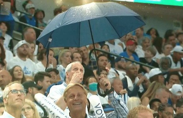 上半场比赛,独行侠的三分球手感便非常滚烫,三分球23中11,半场结束领先勇士15分。中场休息阶段,独行侠主场天花板漏水,比赛一度中断。不过突如其来的意外,并没有打乱独行侠的节奏。第三节,他们单节再进8记三分球,场外暴雨如注,场上也下起了三分雨。
