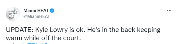 24直播网05月22日讯 ,NBA季后赛东决G3正式打响,热火后卫凯尔-洛瑞火线复出,不过第一节仅打5分钟,便因伤离场返回更衣室;之后热火官方更新伤情并且报平安:凯尔-洛瑞没问题,他会重新上场的。