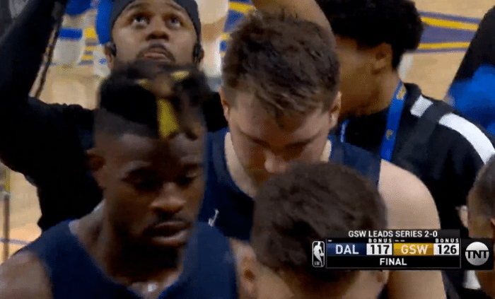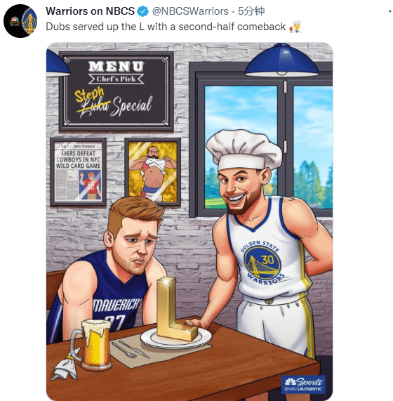 西决G2赛后,东契奇沮丧离场,轰下42分8助攻5篮板以及末节14分仍惨遭逆转,美媒疯狂恶搞东契奇输球;勇士队则是疯狂庆祝,普尔“猛拍”库里胸口,随后两人拥抱击掌庆祝;返回更衣室途中,勇士工作人员为库里欢呼,库里还在更衣室楼梯口高呼:加油!