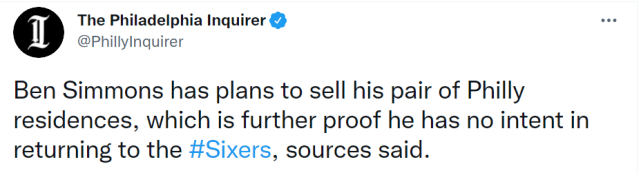 消息源透露,如果西蒙斯愿意出售位于费城附近的另一套豪宅,他的要价大概是490万美元,那套豪宅占地面积约929平方米。今年夏天,西蒙斯以1750万美元的价格在南加州购买了一处新的豪宅,和76人闹僵的这段时间,他都住在南加州的房子里。