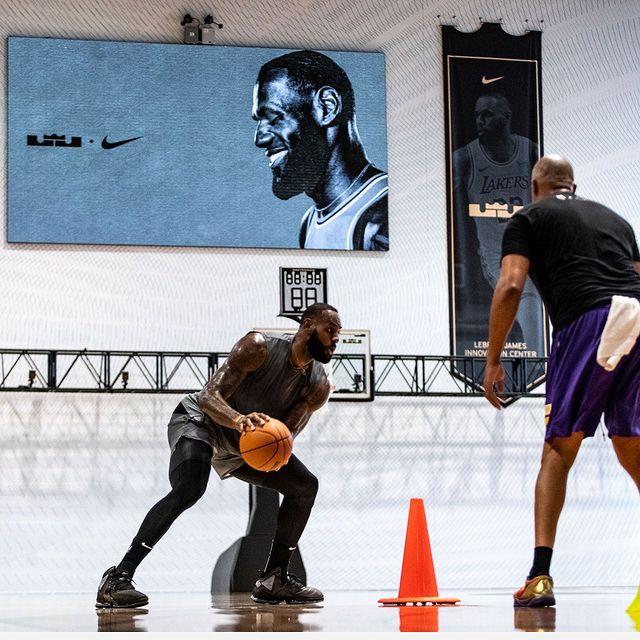 詹姆斯亲自参观以“勒布朗-詹姆斯”命名的耐克创新中心,这栋大楼外部有一处十分醒目的LBJ logo,大楼内设印有詹姆斯专属logo的球馆,中央logo处印着詹姆斯生涯的重要荣誉——4次常规赛MVP、16次全明星、4次总冠军和4次FMVP。