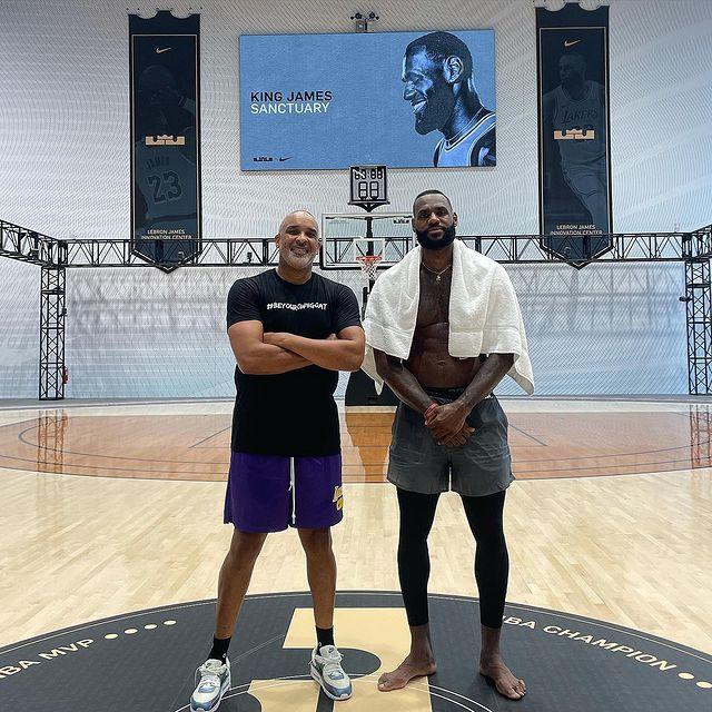 湖人助教菲尔-汉迪晒出自己陪同詹姆斯在该球馆训练的画面,汉迪恭喜老詹:詹姆斯儿时梦想真的可以实现!能够有机会见证并在#国王詹姆斯的避风港做我们的训练,我感觉无比荣幸!惊为天人的建筑,不可思议的成就!