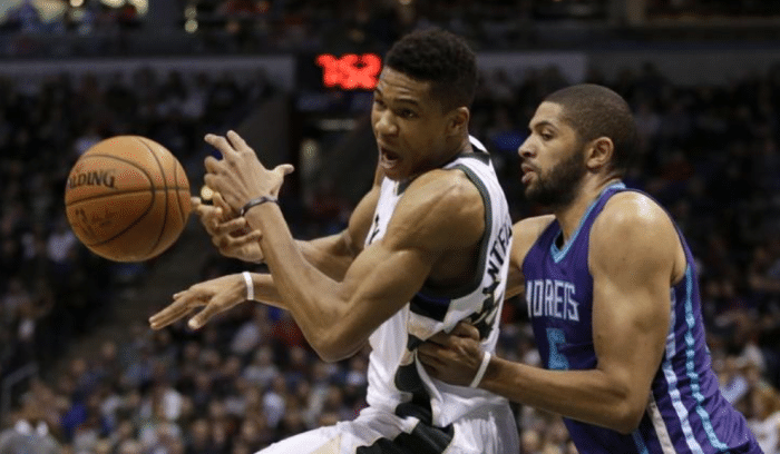 24直播网讯 北京时间7月23日,《TheRinger》撰文报道了雄鹿前锋扬尼斯-阿德托昆博几年前的一个故事,当时雄鹿和黄蜂的比赛赛前,他在场边和助教约什-奥本海默聊天!