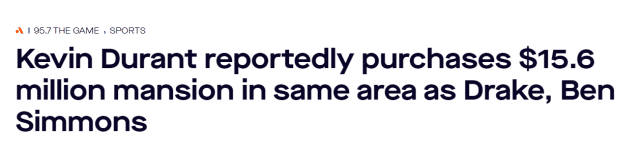 24直播网讯 北京时间7月23日,篮网球星凯文-杜兰特在洛杉矶的隐山(Hidden Hills)某社区斥资1560万美元购置了一套豪宅,有趣的是不到一个月前,本-西蒙斯也在同一社区买下一套房产,他花了1750万美元。换言之,杜兰特和西蒙斯成了邻居,美媒调侃:杜兰特可以在休赛期教西蒙斯罚球了。