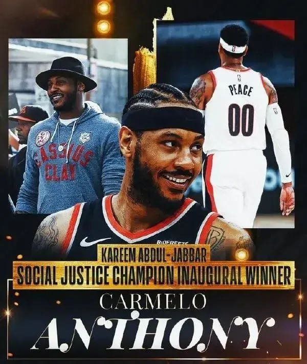 说个好消息压压惊,就是人在家中躺的甜瓜成功得奖,因坚持NBA平等、尊重与包容的价值观,获得了首个贾巴尔社会正义冠军奖!