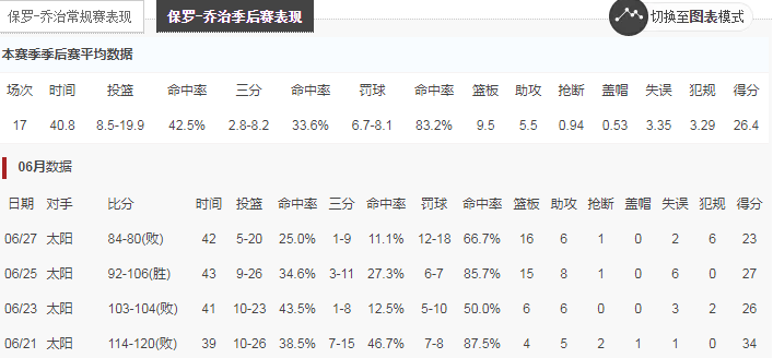 没有命中关键罚球应该责怪乔治吗?可以在输球后摆正心态的乔治,他的承压能力是很强大的,你可以分开解读一下数据,在进入6.3秒罚球大战前,乔治14罚11中,罚球命中率78.5%,并不算太糟糕,可见乔治罚球手感不错,然而比赛打到这样的程度,连保罗在最后时刻罚球也罚丢一个,你很难责怪乔治最后时刻4罚1中,因为里面有两个罚球算是战术性罚不中,只是乔治罚丢了最为关键一球,而乔治今年季后赛场均上场40.8分钟,总计时间遥遥领先排名第二的球员,乔治能不累吗?