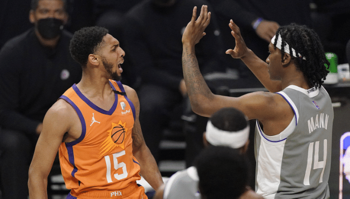 24直播网讯今天NBA季后赛西部决赛G4结束了争夺,最终太阳以84-80险胜快船,总分3-1勇夺赛点。这场比赛太阳和快船打得非常惨烈,比赛中太阳一度长时间领先两位数,上半场也领先快船14分,不过到了下半场,雷吉和乔治等人爆发,缩小比分差距。末节的鏖战,双方几乎打到弹尽粮绝,加强防守的情况下得分都很困难。最终保罗关键的罚球,太阳把握机会能力更强一些,成功拿下胜利,系列赛总分来到3-1领先,勇夺赛点。