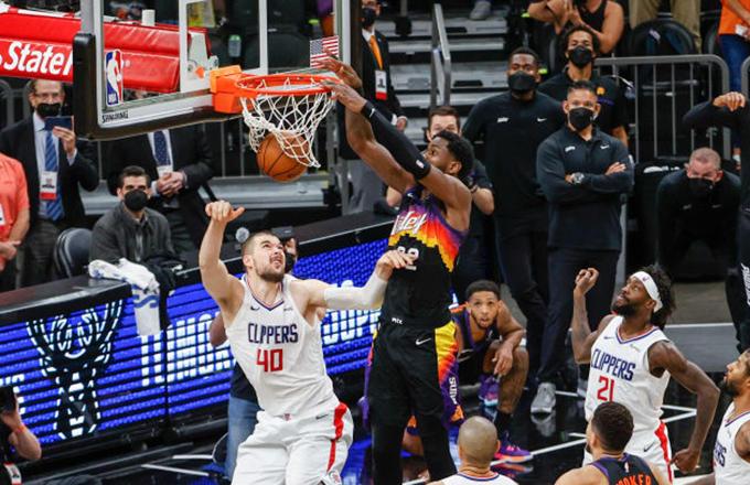 24直播网讯 北京时间6月23日,在结束不久的西部决赛当中,菲尼克斯太阳凭借中锋艾顿的一记空接扣篮绝杀,104-103险胜太阳,系列赛大部分2-0领先快船。