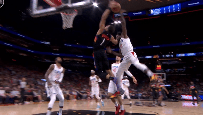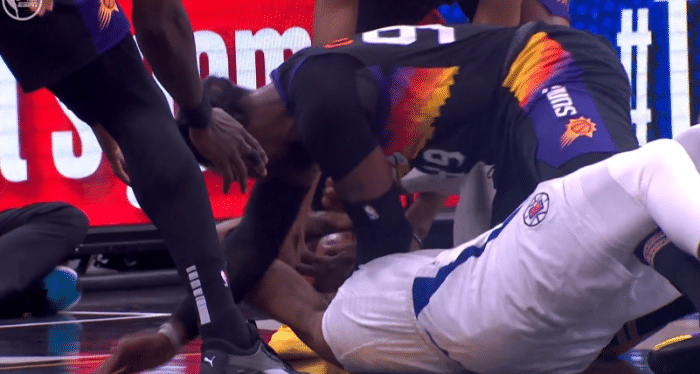 24直播网讯 北京时间6月23日,太阳和快船西决第二场,首节开场没多久,场上就发生激烈的身体接触,太阳悍将克劳德倒地和乔治拼抢球权,小莫里斯为队友抱不平,推了一把克劳德,最终两人都吃到技术犯规。