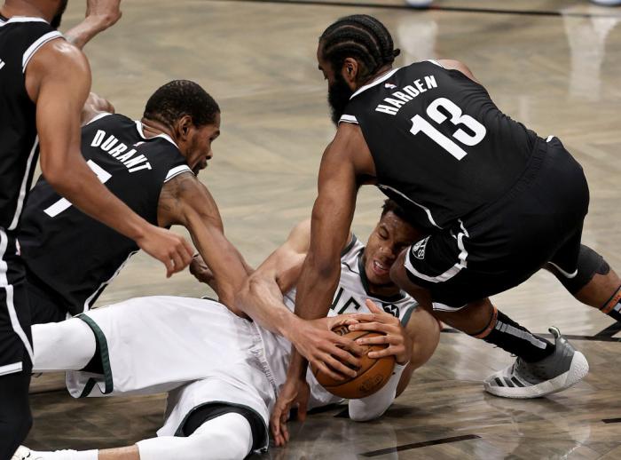 24直播网讯 北京时间6月20日,篮网主场加时惜败雄鹿,杜兰特全场打满53分钟轰下48分9篮板6助攻仍遗憾出局,加时赛0分以及关键三分三不沾,死神筋疲力竭真累了;哈登带伤出战同样尽力了,赛后哈登透露自己的真实伤情,并不是腿筋紧张,而是腿筋二级拉伤。