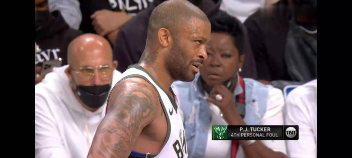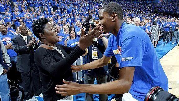 当杜兰特走上罚球线罚球的时候,有趣的一幕发生了,或许是心疼自己的儿子,杜兰特的母亲对着始作俑者塔克是一顿猛喷,塔克也是转过头看了看杜兰特的母亲,看到塔克回应,杜兰特的母亲依旧是不依不饶,不过有趣的是塔克并没有回击,而是以一个微笑回应了杜兰特的母亲。