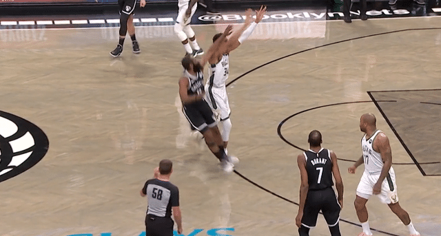 下半场比赛,当雄鹿队打出12:0的猛攻的时候,又是杜兰特站了出来回应,第三节比赛还剩下2分多钟的时候,杜兰特已经拿到了31分7篮板4助攻的数据。为了这场比赛,杜兰特有多拼呢?比赛进行到第三节还剩下三分多钟的时候,因为哈登没有卡住塔克,让抢到篮板球的杜兰特直接受到冲击,被撞击后,杜兰特也是重重倒地,这也是杜兰特本节比赛的第三次倒地,随后裁判吹罚了犯规,杜兰特走上了罚球线。