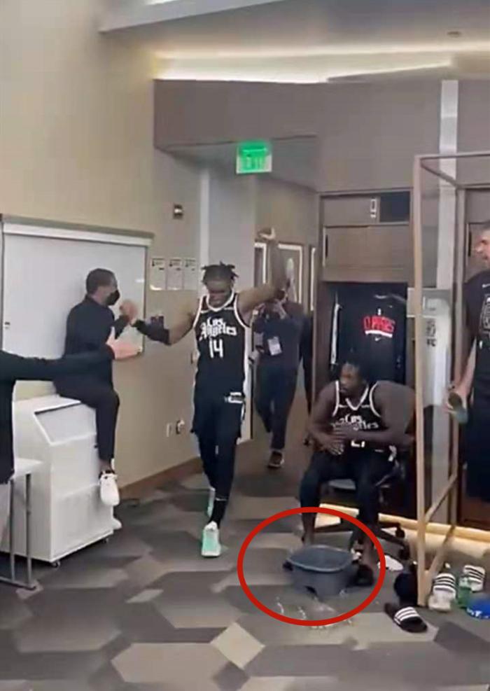我们再来说说更衣室最冷静的人,当快船队疯狂的进入庆祝环节的时候,伦纳德一个人坐在后面,远远地看着队友庆祝,似乎这一切和他没有关系。伦纳德的行为也被部分球迷质疑不合群,伦纳德为何不参加庆祝呢?首先是伦纳德的经历不是这群人可以比的,他已经拿到了两个总冠军,两个总决赛FMVP,套用球迷调侃的话语,坐在远端的伦纳德表示:这帮人不会没打过西决吧?是的,阅历也决定了一切,一个西决不足以让伦纳德陷入疯狂的庆祝。