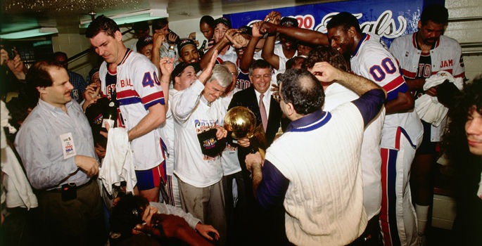 1989-1990赛季总结:对于公牛队而言,乔丹加盟后的几个赛季可谓失望与希望并存,一次次令人失望,却又能让人从中看到曙光。痛定思痛,公牛队在1989年夏天解雇了道格·科林斯,请来了“禅师”菲尔·杰克逊。杰克逊带来了更为先进的战术理念:三角进攻,一种讲求快速传导、穿插切入,灵活调动场上5人的战术系统。由于坐拥乔丹这样的超级巨星,杰克逊也留了一手,那就是当既定战术不灵时,乔丹拥有无线开火权。乔丹继续霸占得分榜,三分球命中率也提高到了37.6%,在公牛队对阵骑士队的比赛中,他砍下了职业生涯最高的69分。常规赛,公牛队取得了自1971-1972赛季以来最好的55胜27负。但似乎是天意弄人,公牛队闯入东部决赛后,又一次碰到了克星活塞队,结果不变,他们又被“坏孩子”军团淘汰了。就和乔丹后来成为所有列强的噩梦一样,这三年活塞队就是乔丹的噩梦。哪年哪月,才会从梦中醒来?
