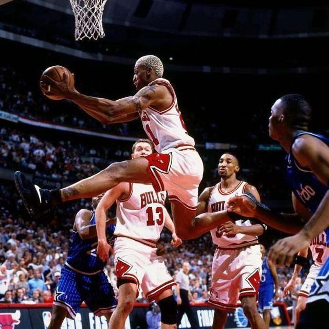 24直播网讯 丹尼斯.罗德曼,NBA历史上最好的篮板手之一,在生涯末期,当马刺已经抛弃了这哥们,当没有球队愿意要他的时候,罗德曼来到了乔丹身边,帮助乔丹成就了又一个三连冠,要知道他来到乔丹身边的时候已经是35岁的高龄了,罗德曼的身强力壮和天赋可见一斑。