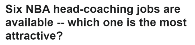 24直播网讯 北京时间6月17日,鹈鹕和大范甘迪结束合作,奇才与布鲁克斯分道扬镳,目前,NBA有六支球队的主教练位置处于空缺状态,换言之,联盟五分之一的球队正在物色新的主帅人选。这六个帅位的吸引力如何?ESPN公布了一份排名,凯尔特人的帅位排名第一,被视为最有吸引力的选择,而开拓者的帅位排在最后一位。