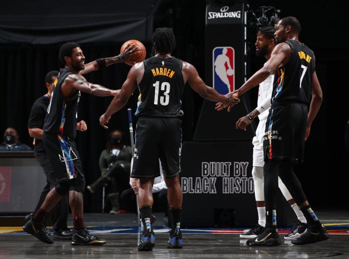 本赛季篮网三巨头杜兰特、哈登和欧文仅仅只在一起打过七场比赛,战绩是5胜2负;美媒统计,哈登出战时篮网战绩是25胜7负,不管是哈登和欧文或者哈登和杜兰特双核带队以及哈登单核带队,篮网战绩都不错。