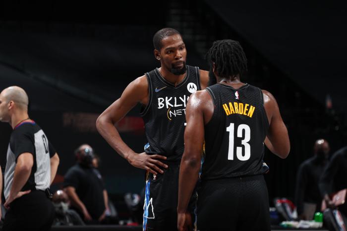 24直播网讯 北京时间4月20日,篮网下一场对阵鹈鹕的伤情报告出炉,杜兰特(坐大腿挫伤)、哈登(腿筋拉伤)、丁威迪、齐奥萨(骨折)和泰勒-约翰逊(膝伤)五人都因伤缺席比赛,篮网伤病不断还有坏消息,两大年轻球员克拉克斯顿和雷吉-佩里违反防疫协议,被强制隔离也缺席比赛。