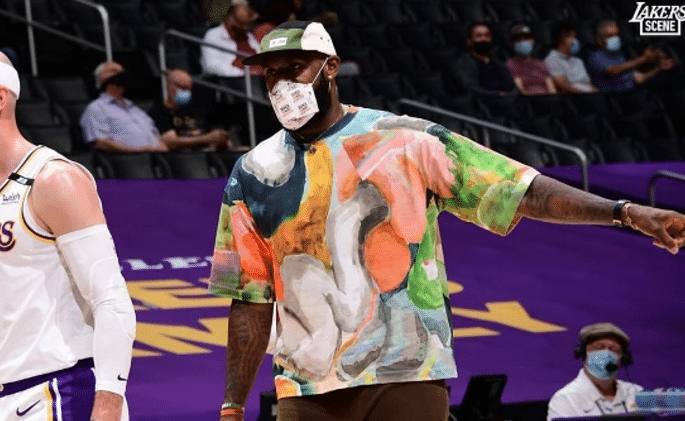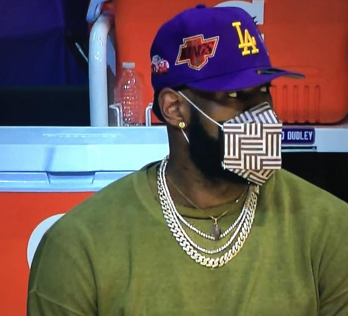湖人首节23-29暂时落后爵士6分,第二节开打之前,詹姆斯走到湖人替补席,代替沃格尔变身湖人主教练,双手演示防守动作,指导众队友;36岁詹姆斯戴着一顶紫色棒球帽,戴着手表以及好几串钻石项链,穿金戴钻太奢华,土豪詹教练上线了。