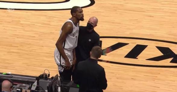 不过这场比赛开场不久后,篮网队就找到了重击,仅仅打了4分钟,篮网队球迷最害怕的事情发生了,那就是杜兰特的伤病问题。杜兰特突然遭遇了大腿挫伤,直接返回更衣室治疗,随后篮网队表示杜兰特本场比赛不会再归来。