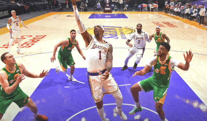 24直播网讯北京时间4月18日,湖人主场对阵爵士,戈贝尔、米切尔、费沃斯、康利均缺席,而詹姆斯和浓眉哥也继续养伤。双方都缺少主力,紫金军团最终通过加时以127比115获得胜利!