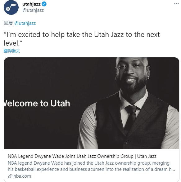 哈登发推“另一个层次,恭喜韦德”热火老板阿里森“我要恭喜韦德,我们曾讨论过在他退役后成为球队老板之一,但他当时没做好准备。当然我很稀罕他没有重新考虑这个方案,但我还是祝福他在爵士好运并取得成功。对我而言,韦德一辈子都是热火人!”