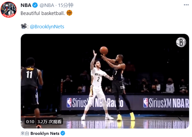 这球篮网真正做到了手不粘球马不停蹄,场上所有5人在一次进攻回合中都触摸到了球,而且除了哈里斯的突破没有一次运球,行云流水令人赞叹。NBA官推也转发了这个进攻回合,并且称赞道“美丽篮球”!