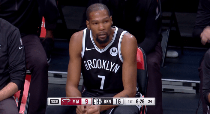 暂停回来欧文24秒进攻违例,杜兰特传球失误,哈登持球强突被抢断,篮网被打4-0小高潮,杜兰特不讲理急停跳投止血,随后哈里斯又轰进空位三分,可惜杜登连线失败,杜兰特空接上篮不进,然后杜欧连线,杜兰特加速突破造犯规两罚全中,被犯规后杜兰特趁机坐在替补席休息了一会。