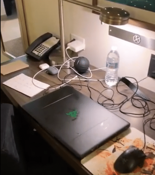 林书豪晒出了自己的隔离生活,可以看出房间内的东西是一应俱全的,带来行李中的衣服都放在房间内的衣柜里面,桌子上有小零食等东西,同时可以看出林书豪带了两个电脑,他可以办公和打电动游戏。