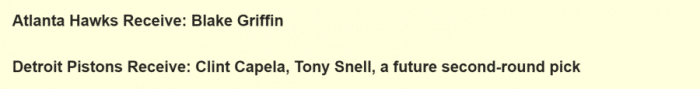 对于活塞来说,如果快船或其他球队愿意给出能令人满意的报价,那就会非常乐意送出格里芬,毕竟他们是重建球队,前者已经显得有些鸡肋。