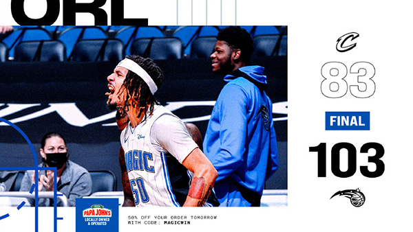 24直播网讯:北京时间1月5日消息 NBA常规赛继续进行,魔术坐镇主场迎战骑士。此役魔术阵中两员大将戈登和武切维奇都展现出火热状态,双双砍下20+,带领魔术主场103-83大胜骑士,结束两连败。