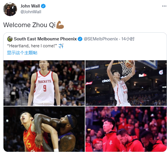 火箭球星沃尔在自己的推特上转发了周琦加盟凤凰队的官宣推特,并配文写道:欢迎周琦!(加油表情);沃尔转发的动态之中,有周琦身披火箭队9号球衣和中国男篮15号球衣的赛场照。