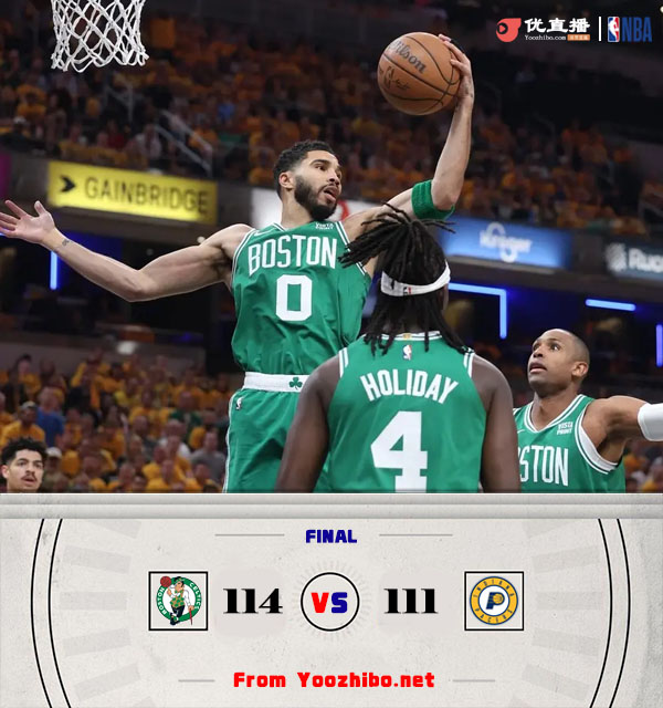 24直播网5月26日讯 NBA季后赛东部决赛G3,步行者今日回到主场迎战凯尔特人,双方前两战凯尔特人都取得胜利大比分2-0领先,此役哈利伯顿和波尔津吉斯均缺战。比赛上来,凯尔特人就率先进入状态打出8-2的开局取得领先,步行者虽然一直处于落后但始终紧咬比分,首节他们只落后1分,次节步行者继续冲击内线,特纳连续得分帮助球队成功反超,托平的追身中距离更是将分差拉开到两位数,半场结束时凯尔特人落后12分;下半场回来,步行者的命中率有所下降,不过凯尔特人也并没有迫近比分,双方一直围绕着十分左右的分差展开拉锯,末节凯尔特人发起凶猛的反扑,比赛悬念也是打了回来,关键时刻霍勒迪打成反超2+1,内姆哈德中距离打铁,随后又是被霍勒迪面断,内史密斯绝平三分不中,最终凯尔特人18分逆转步行者,大比分3-0拿到赛点。