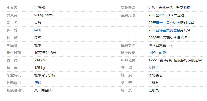 王治郅是中国篮球界进入NBA的第一人,被评选为中国篮坛50大杰出人物和中国申办奥运特使。他和姚明、蒙克·巴特尔一起,被称为篮球场上的“移动长城”。